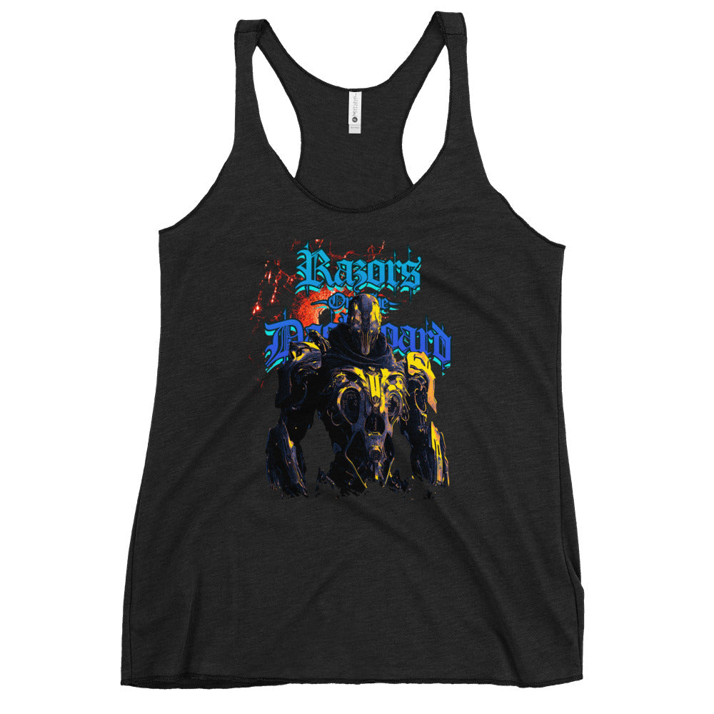 Introducing the Razors on the Dashboard RebelFit Racerback Tank, a perfect blend of comfort, style, and edginess. Designed to enhance your workout experience while keeping you fashionable, this tank top is a must-have for active and trendy women. Featuring our popular design, "Cyborg". Check out the key features below: